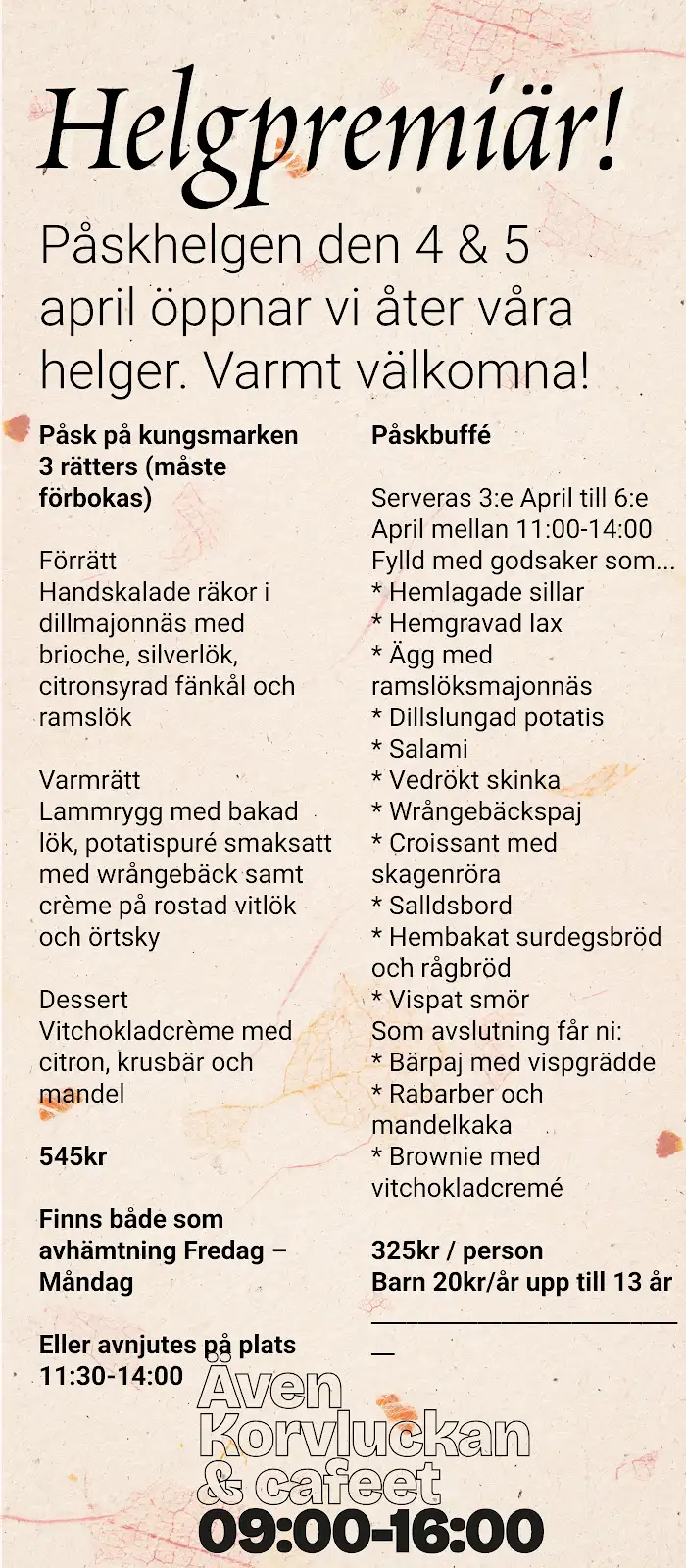 Påsk på Kungsmarken – 3 rätters (måste förbokas)